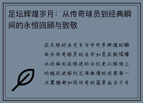 阅读更多超级杯作为足球世界中的一项重要赛事,不仅吸引了全球观众的目光,更是充满了激烈竞争与戏剧性。每年的超级杯都可能成为球迷热议的焦点,然而,在这项赛事的历史长河中,也有一些球员因其表现或言论而成为争议的中心。这些球员的风云往事,时至今日仍然被津津乐道。而其中,一些球员更因其引发的争议而被认为是“超级杯历史...